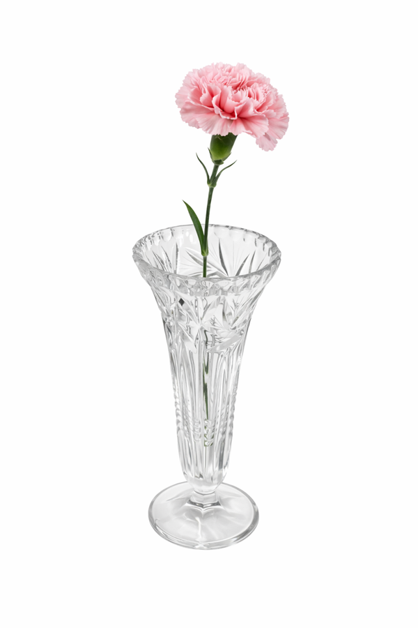Schwere, geschliffene Blumenvase aus Bleikristall mit Fuß – klassische Form, klare Brillanz, genau so ein Teil, das man früher gekauft hat, weil’s einfach wertig ist. Die Vase ist top gepflegt und wirkt durch den Schliff richtig schön „crisp“, ob mit Blumen oder solo als Deko. Maße (ca.): Boden 7,5 cm, Öffnung 9,5 cm, Innenhöhe 17 cm.