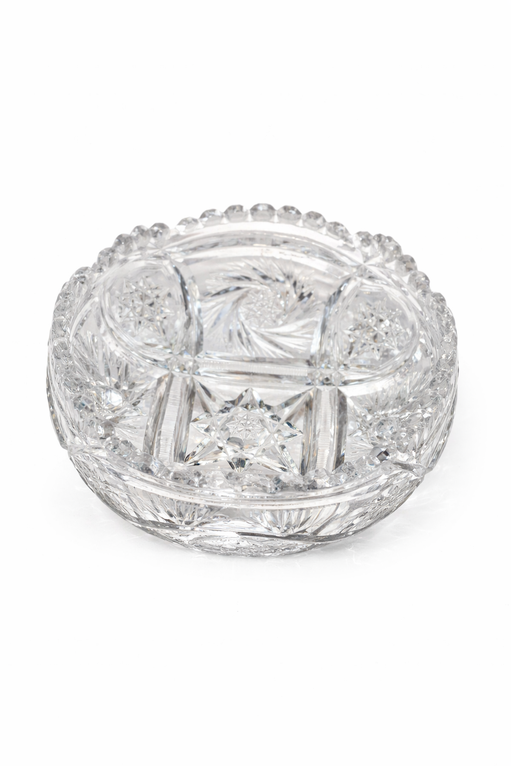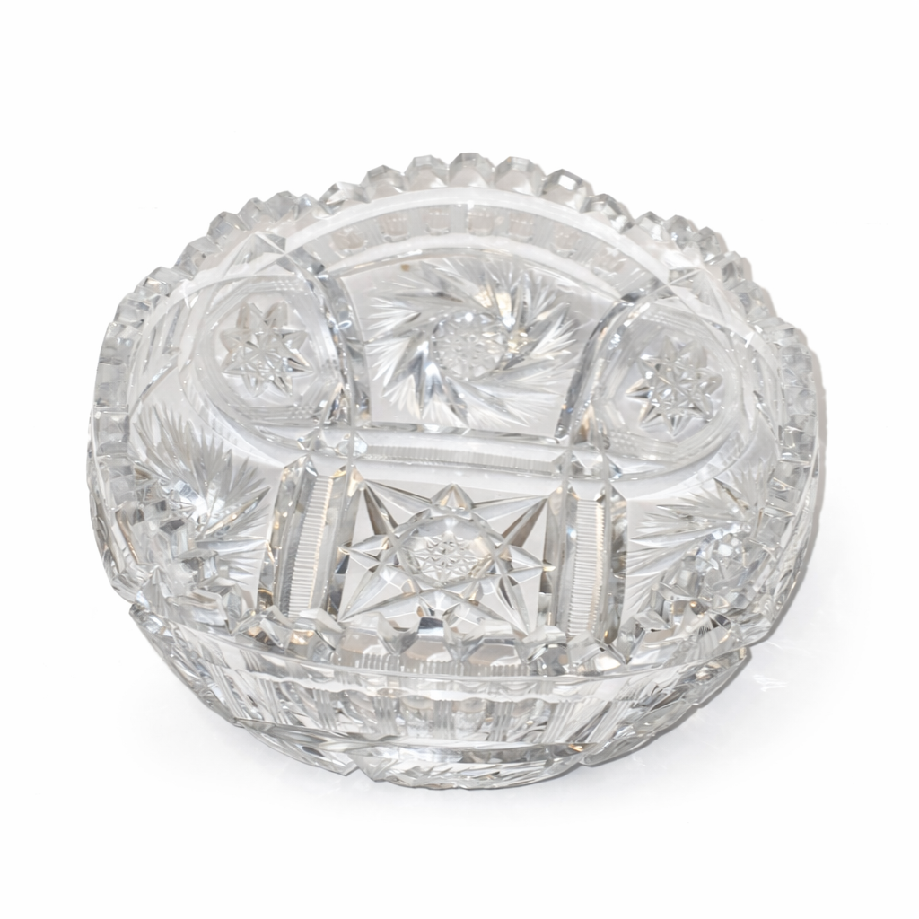 Massive Bleikristall-Schale mit aufwendigem Schliff und sterniger Facetten-Optik – klassisch, clean, macht sofort „Tafel-Upgrade“.