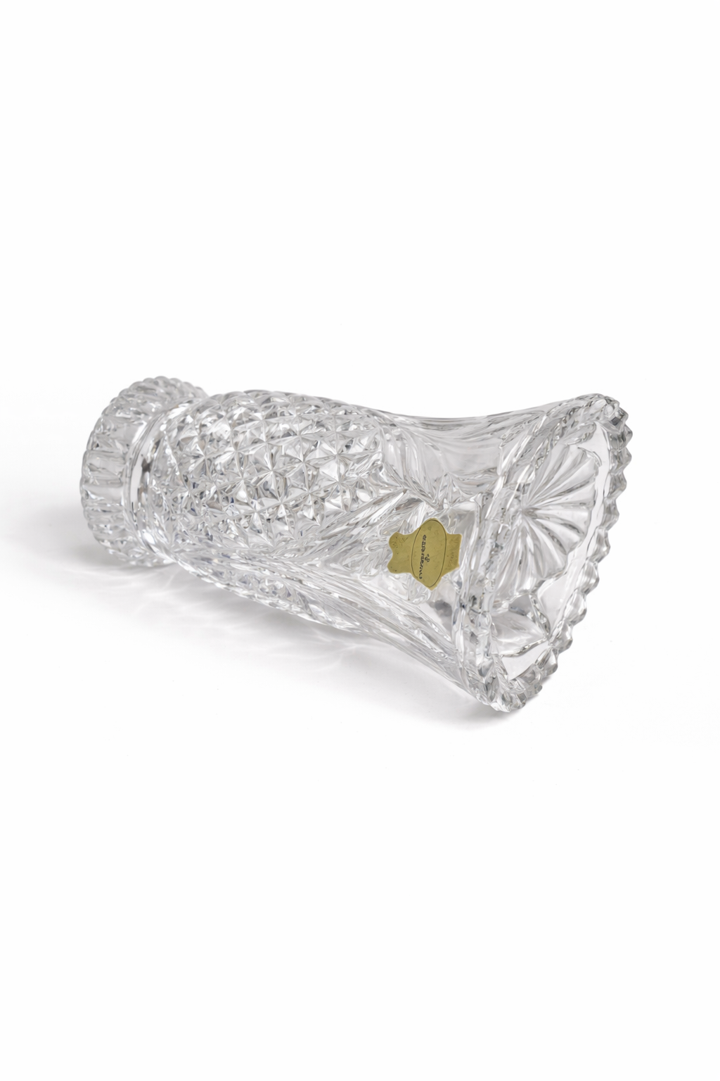 Schwere Bleikristall Vase milchig Blattmotiv – Höhe 15,5 cm, Ø oben 10 cm, Boden 5,5 cm