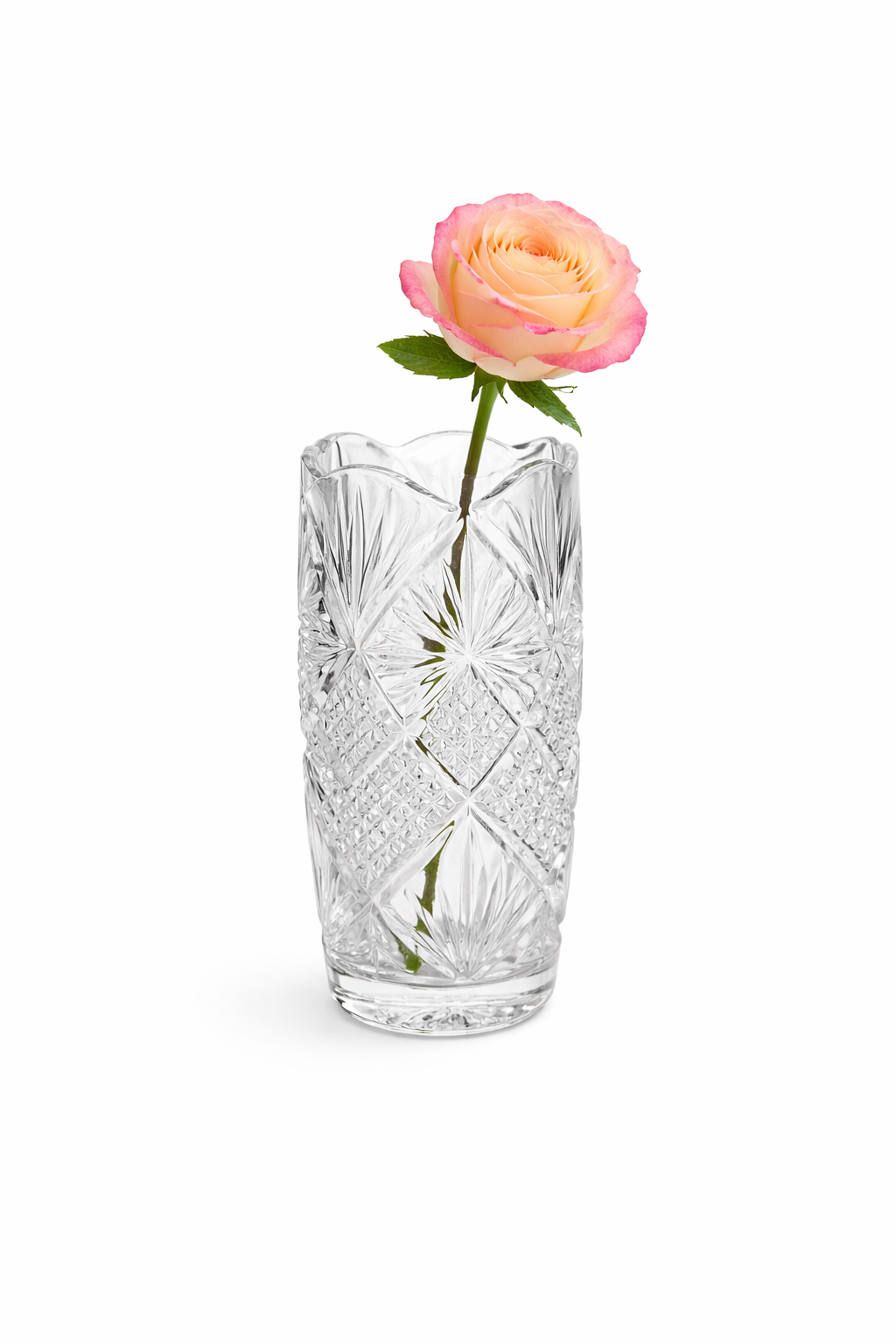Bleikristall Vase geschliffen geriffelter Rand – Höhe 18,5 cm, Ø 6 cm, innen 17,5 cm