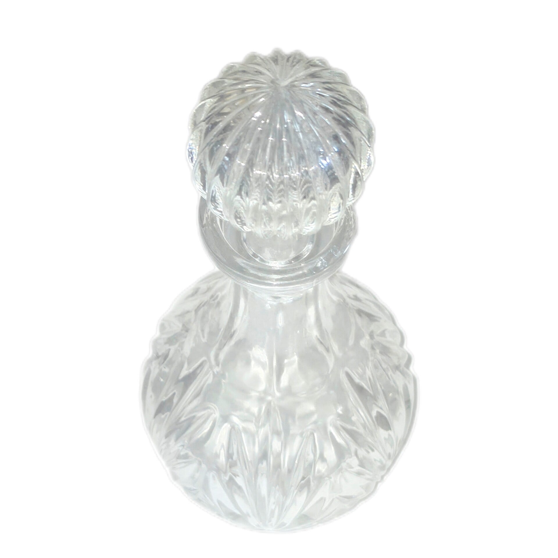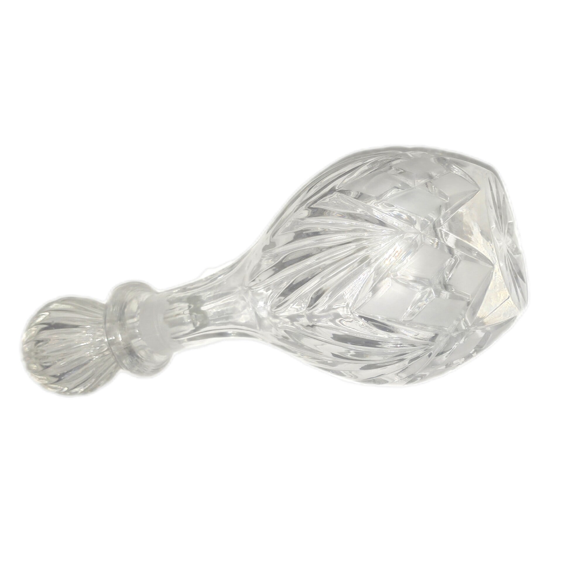 Diese schwere, bauchige Bleikristall-Karaffe ist ein klassischer Hingucker: handgeschliffen, mit Sternmotiv am Boden und unten milchig abgesetzt in Rautenform – wirkt richtig hochwertig auf Tisch oder Barwagen.