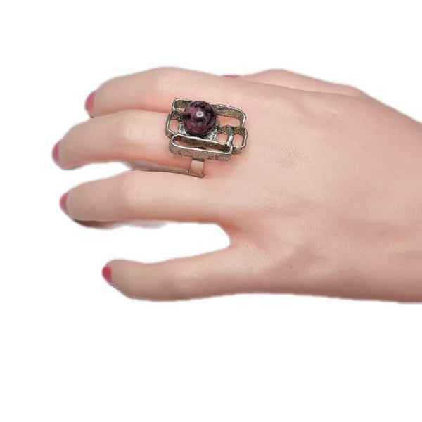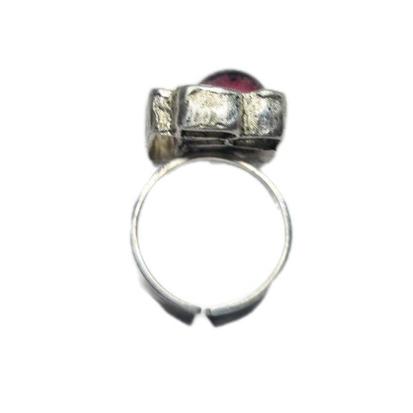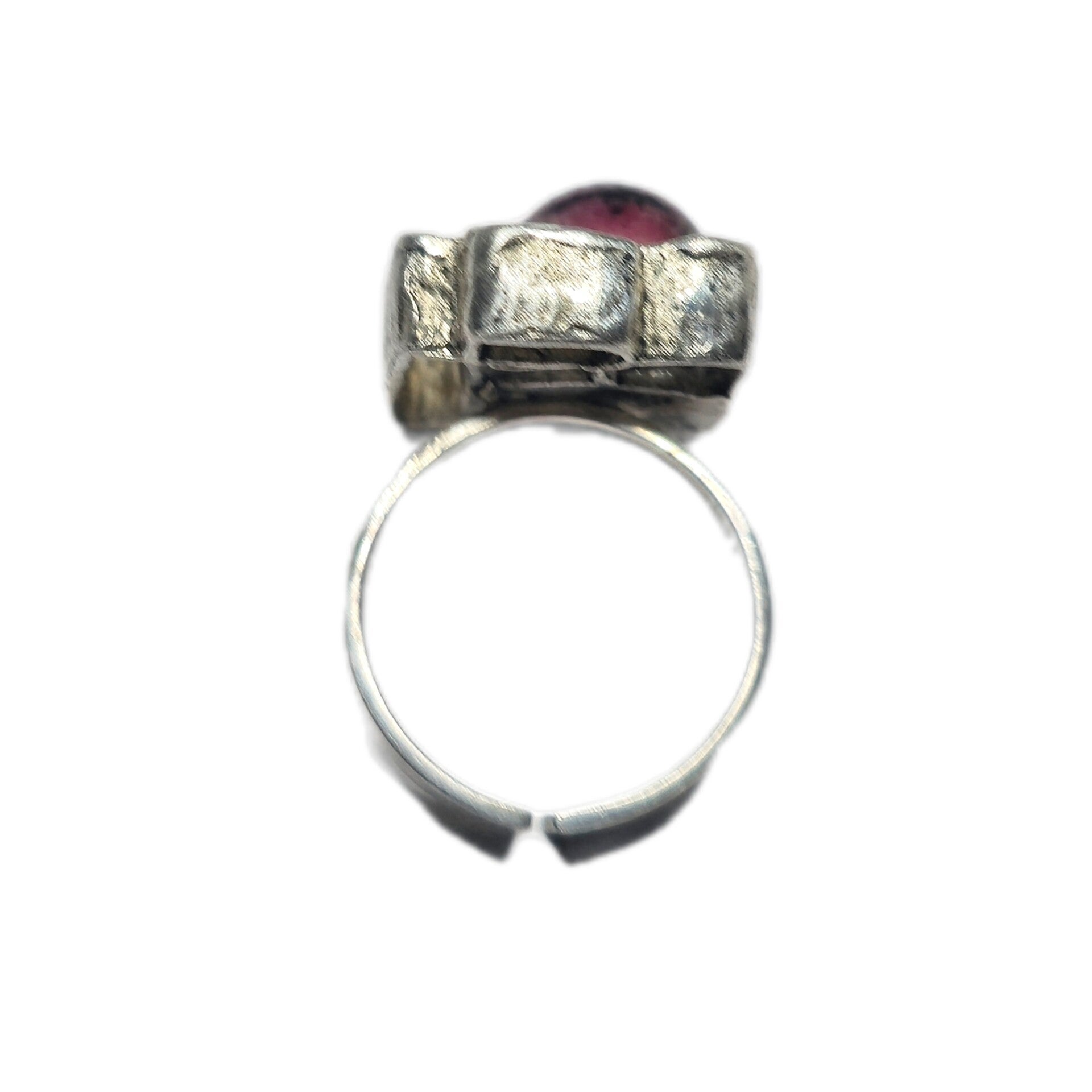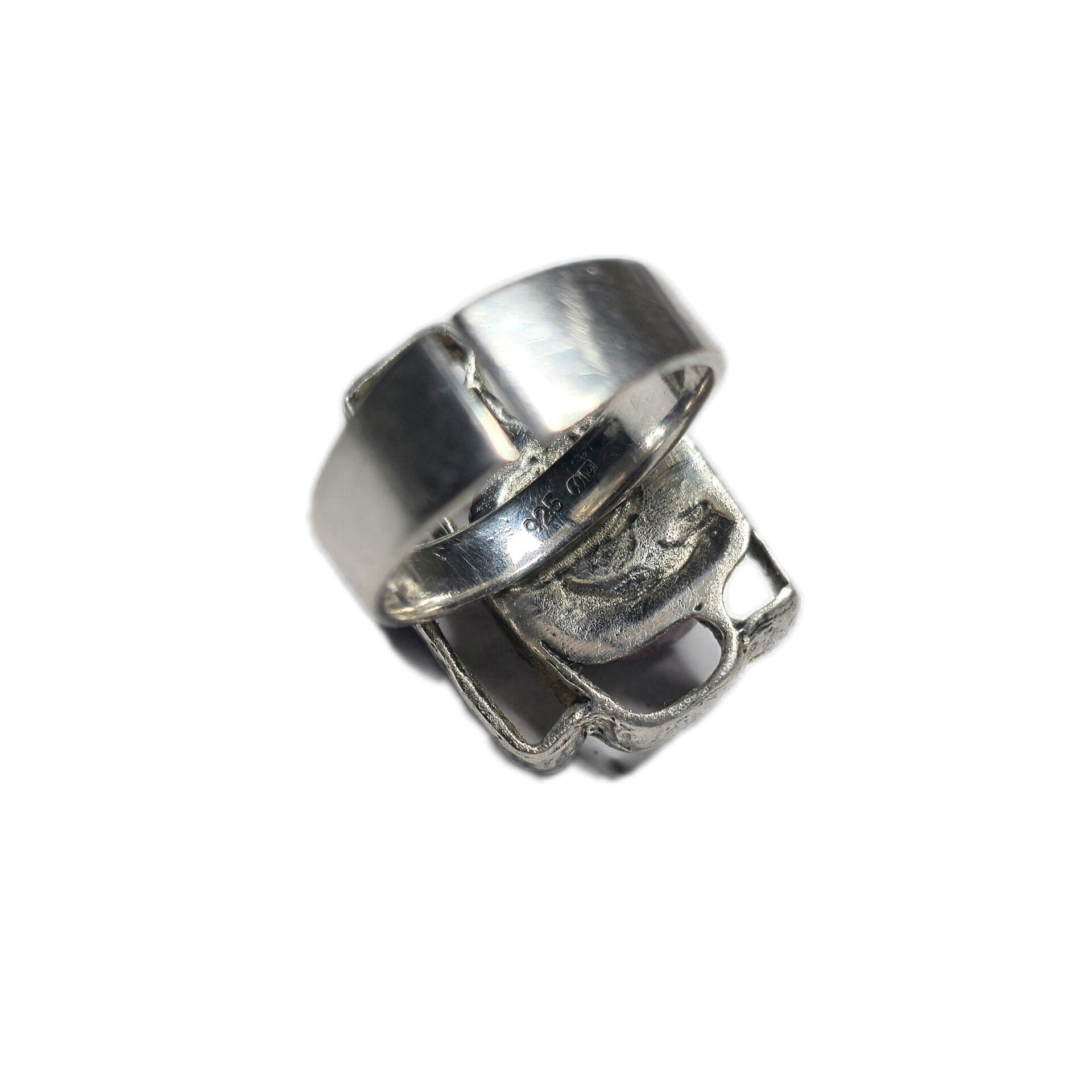Markanter offener Ring aus 925er Sterlingsilber mit einem natürlichen Rhodonit-Cabochon. Das Design ist minimalistisch und modern: klare Linien, offene Form, und der runde Stein als ruhiger Mittelpunkt. Durch die verstellbare Ringschiene ist der Ring flexibel tragbar und wirkt dabei trotzdem massiv und hochwertig.