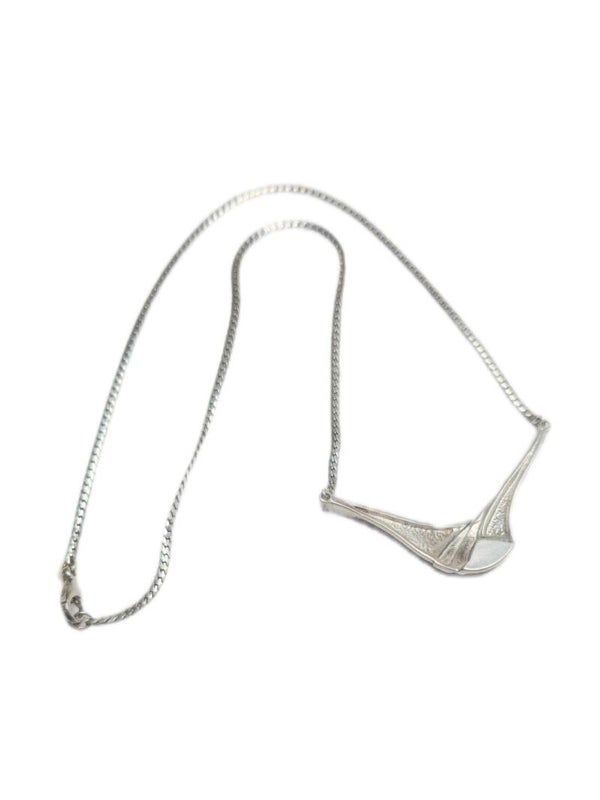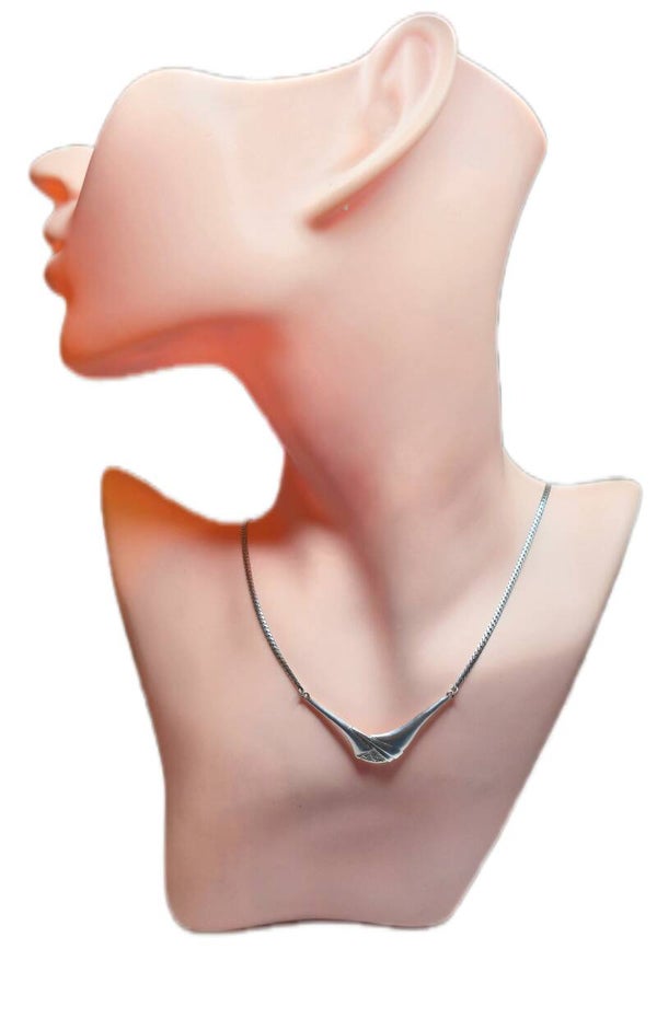 Zum Verkauf steht ein elegante Kette mit Latz aus 835er Feinsilber, das durch seine markante V-Form und das teilvergoldete Design besticht. Die Kombination aus polierter und texturierter Oberfläche sowie das durchbrochene Element verleihen diesem Schmuckstück eine außergewöhnliche Optik.